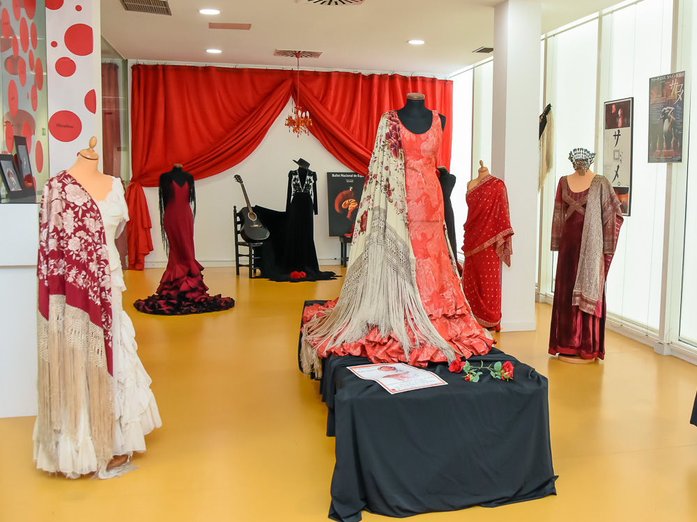 • El concejal de cultura José Antonio Moreno, junto a Aída Gómez, presentaron el pasado jueves la muestra que hace un recorrido por el espectacular vestuario y los accesorios, como abanicos, zapatillas de baile o peinetas, utilizados en los distintos espectáculos protagonizados por Aída Gómez, a lo largo de su exitosa carrera como bailarina y coreógrafa de quien fue la directora más joven del Ballet nacional de España
