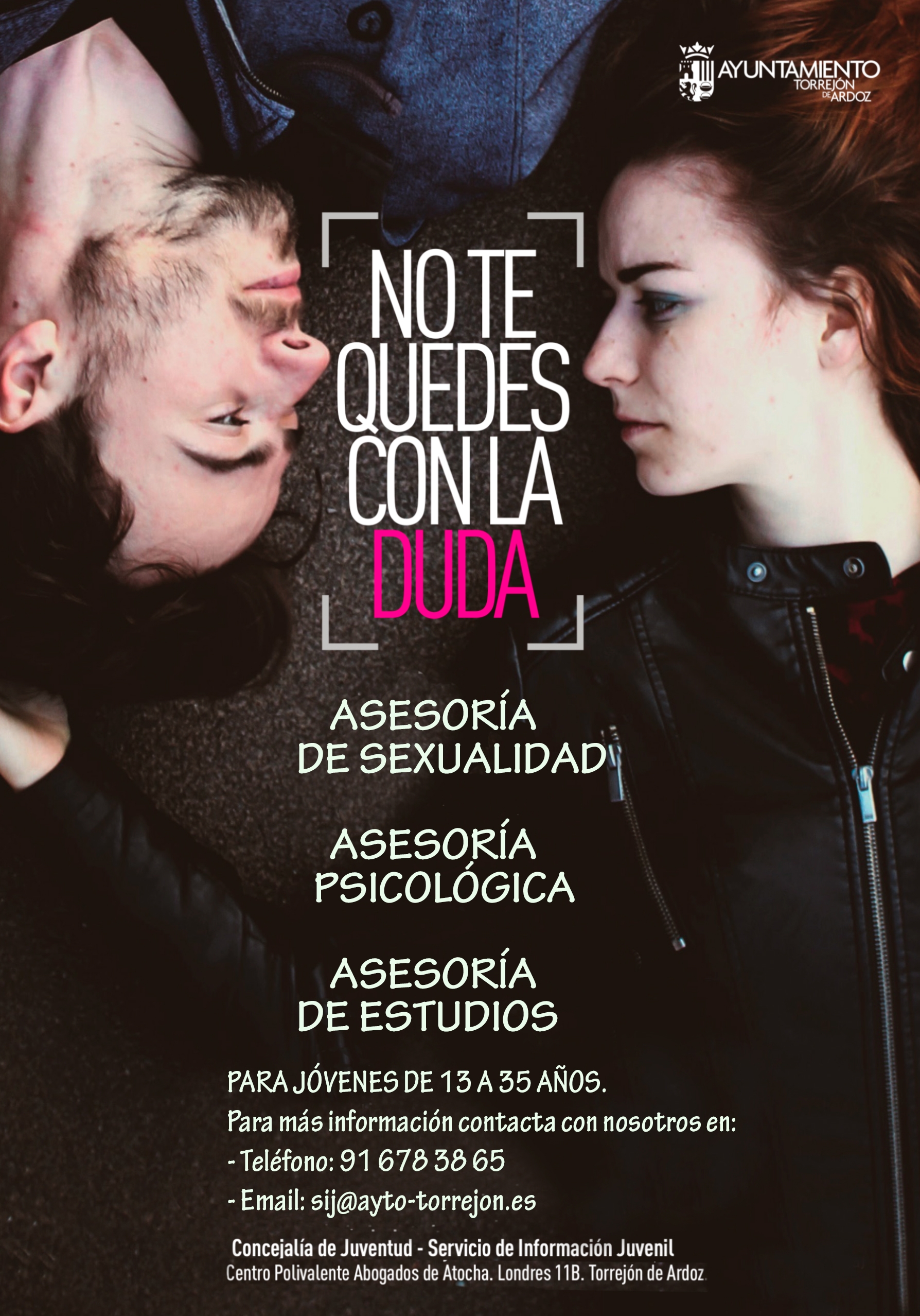 La Concejalía de Juventud del Ayuntamiento de Torrejón de Ardoz cuenta con diversas asesorías para jóvenes sobre psicología, sexualidad, estudios y profesiones