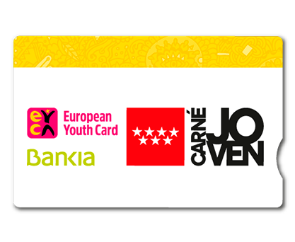 • Así, el Carné Joven Europeo se puede solicitar de forma gratuita y está destinado a los jóvenes entre 14 y 30 años residentes en la Comunidad de Madrid. Ofrece una tarifa reducida en gran número de museos y descuentos y promociones en albergues juveniles y los principales centros de ocio, como parques temáticos, cines o teatros, así como en instalaciones deportivas o compras, salud y belleza, entre otras muchas