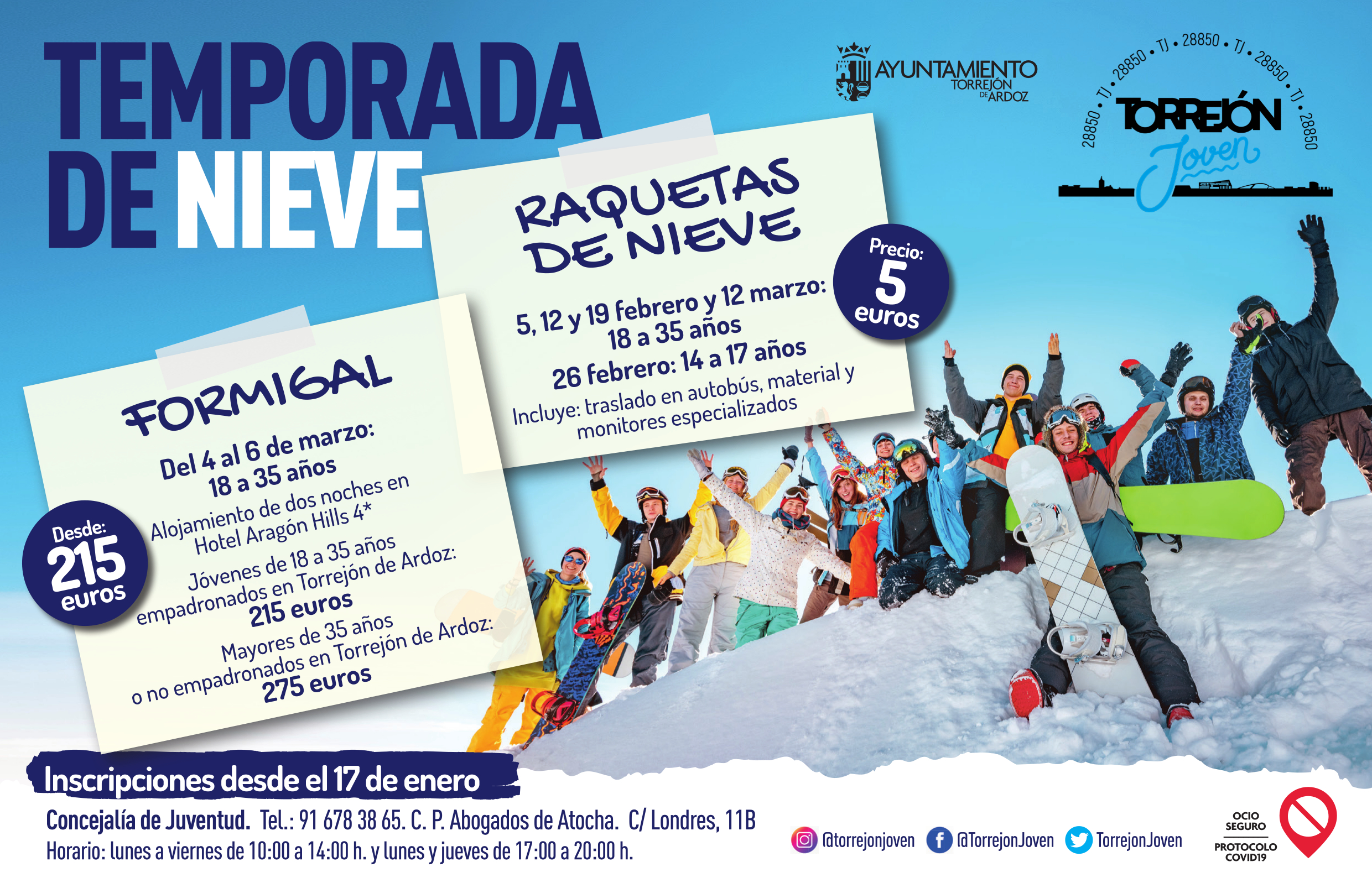 • La otra propuesta es una excursión a “Formigal" del 4 al 6 de marzo para jóvenes de 18 a 35 años empadronados en Torrejón por 215 euros que incluye alojamiento de dos noches en Hotel Aragón Hills de 4 estrellas (no está incluido el transporte). Para mayores de 35 años o no empadronados en Torrejón de Ardoz el precio es de 275 euros