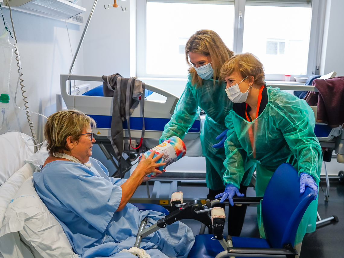 Torrejón de Ardoz, 16 de diciembre de 2022. Se repartieron más de 100 regalos a los mayores hospitalizados y los voluntarios de la campaña interpretaron villancicos. Durante la visita estuvieron presentes la coordinadora de la Asociación benéfica geriátrica, Alfonsi Cabezas, la responsable de proyecto, Natalia Gutierrez, que junto con la edil, Ana Verónica Gonzalez, fueron repartiendo ilusión a los mayores hospitalizados.
