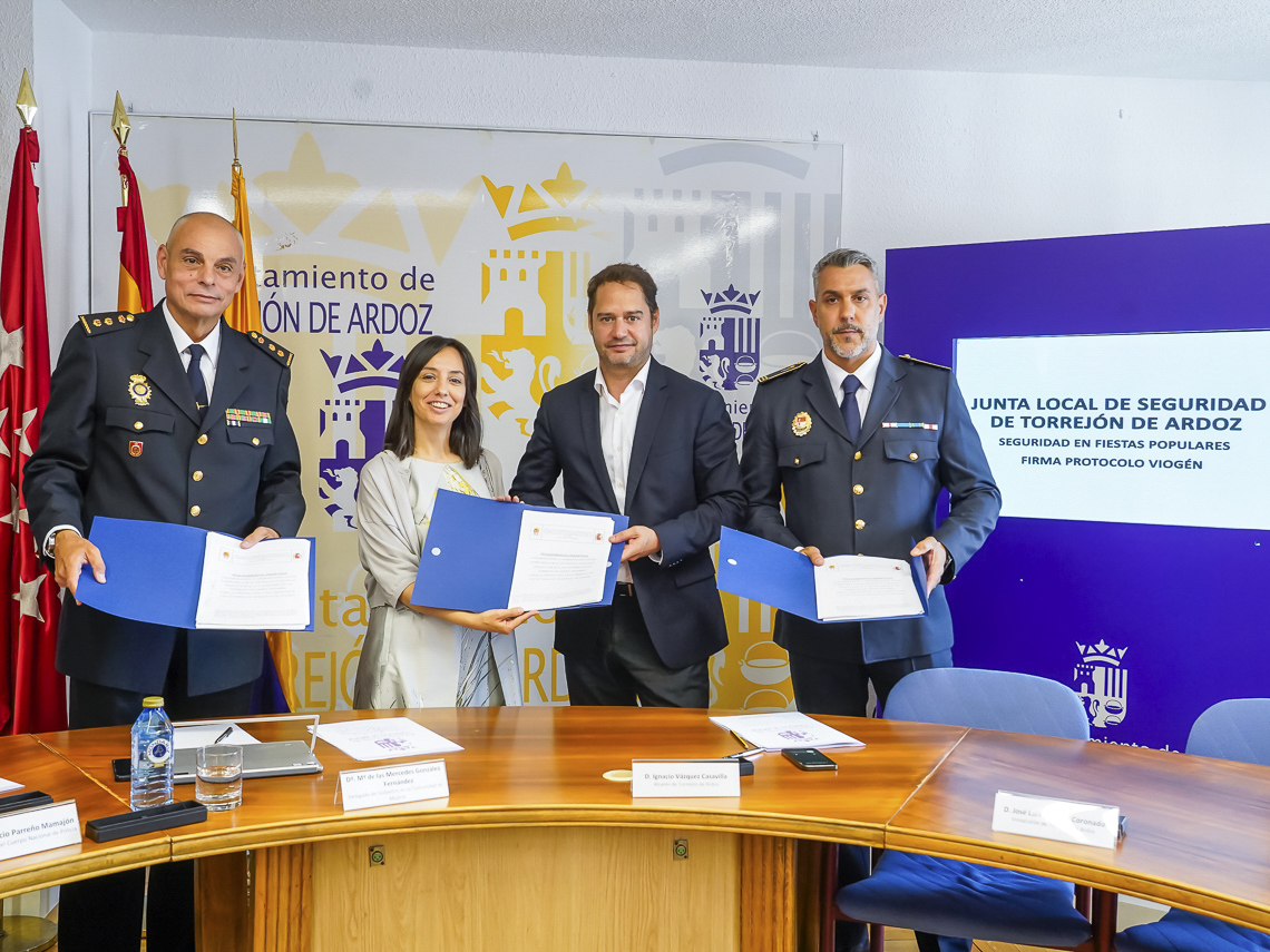 El alcalde de Torrejón de Ardoz ha rubricado esta mañana la incorporación de la ciudad a VioGén, un sistema que da protección a mujeres víctimas de violencia de género, existiendo hoy en la Comunidad de Madrid, 9.360 casos activos, 290 de ellos en Torrejón. Mercedes González: “La incorporación de Torrejón de Ardoz al Sistema VioGén profundiza en el compromiso de este municipio contra la violencia machista”