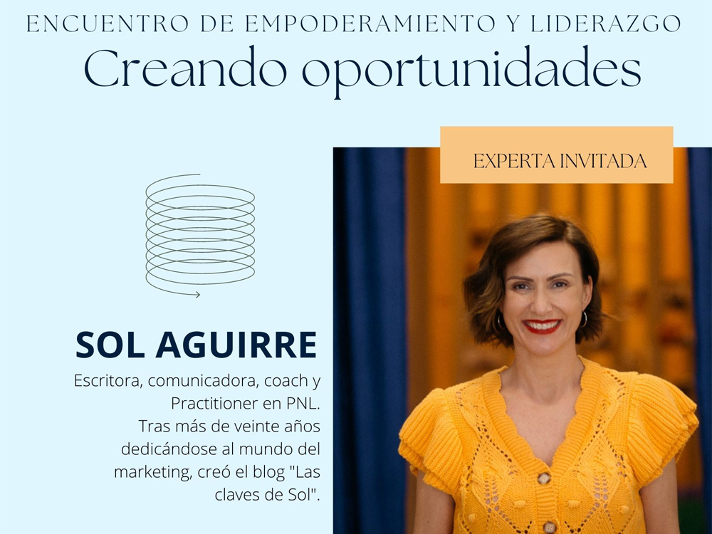 • El evento contará con la presencia de la gran experta en comunicación y coach motivacional, Sol Aguirre. Apasionada de la escritura y tras más de veinte años dedicándose al mundo del marketing, creó el blog de humor "Las claves de Sol", que ha alcanzado un gran éxito. Al término de su intervención, se abrirá un espacio para hacer networking