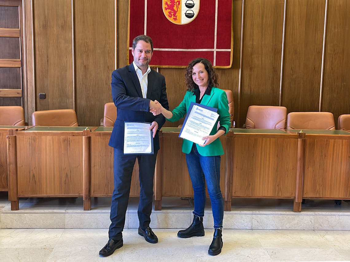 • Mediante el convenio firmado por la directora de la compañía, Aída Gómez, y el alcalde de Torrejón de Ardoz, Ignacio Vázquez, el Ayuntamiento cede gratuitamente una de las aulas de danza de La Caja del Arte para el desarrollo de ensayos y preproducción de los espectáculos de la compañía. Al acto también ha asistido el concejal de Cultura, José Antonio Moreno