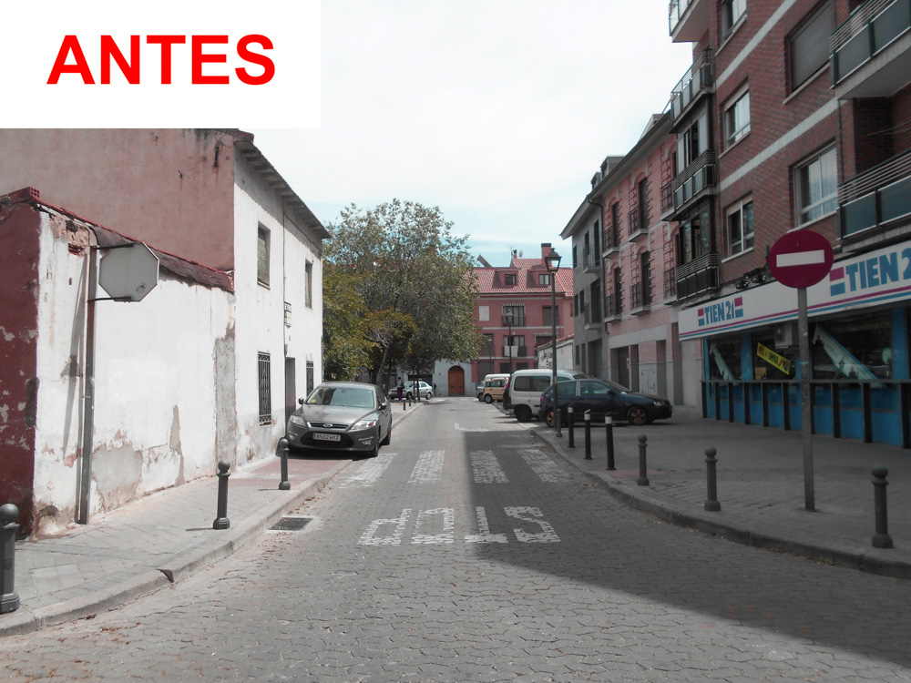 Calle Castilla. Se ha pavimentado la acera, asfaltado la calzada con adoquín y plantado nuevo arbolado.