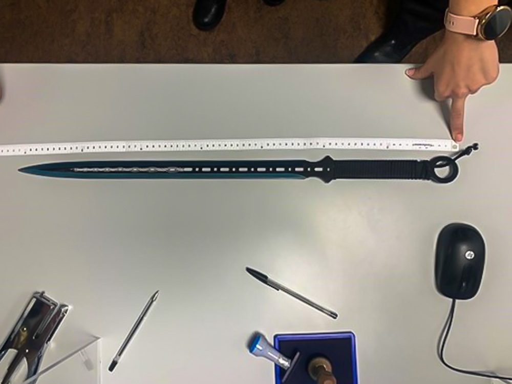 Al no encontrarles armas de ningún tipo en su posesión durante el cacheo, los agentes procedieron a inspeccionar las inmediaciones, hallando escondida entre unos arbustos una espada de 72 centímetros. Asimismo, según manifestaciones a los agentes de unos jóvenes localizados e identificados huyendo del lugar, habían sido amenazados gravemente por una persona cuya descripción dada coincidía plenamente con la de uno de los posteriormente detenidos. Finalmente, además de la detención de dos miembros de los “Trinitarios”, los agentes procedieron a la filiación e identificación de otras 5 personas participantes en la reyerta.