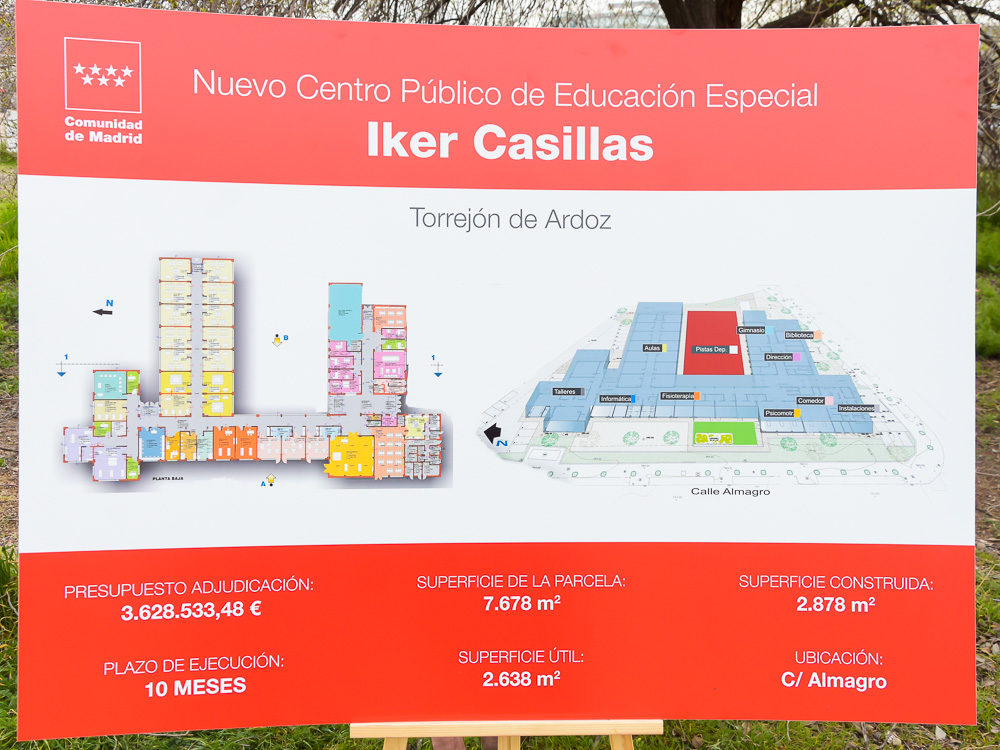 La presidenta de la Comunidad de Madrid, Isabel Díaz Ayuso, el alcalde de Torrejón de Ardoz, Ignacio Vazquez, y el futbolista, Iker Casillas, han presentado esta mañana el nuevo Colegio Público de Educación Especial en Torrejón de Ardoz que llevará el nombre del deportista madrileño. El centro educativo se construirá en la parcela cedida por el Ayuntamiento de Torrejón y situada en la avenida de la Constitución con la calle Almagro. Para su construcción, que comenzará en próximas semanas y que se ejecutará en una única fase, con una previsión para estar operativo en 2022, el Gobierno regional va a destinar 3,6 millones de euros, y refuerza la oferta educativa de este tipo de enseñanza adaptada a alumnos con discapacidad de entre 3 y 21 años.