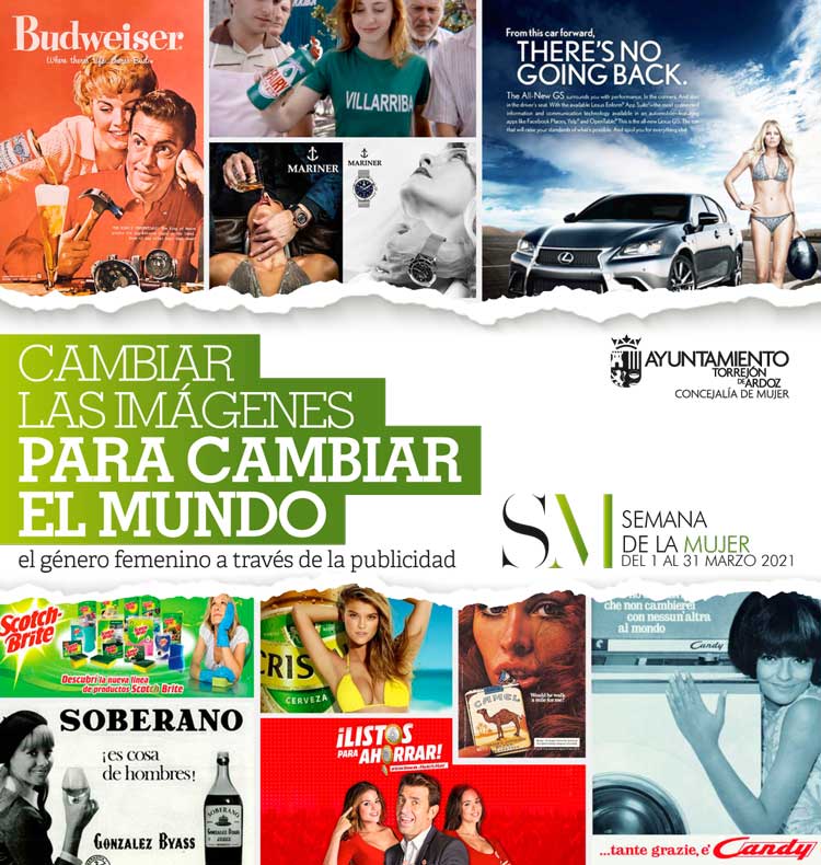 La Semana de la Mujer de Torrejón de Ardoz 2021 se celebrará durante todo este mes de marzo bajo el lema “Cambiar las imágenes para cambiar el mundo. El género femenino a través de la publicidad”. Durante estos días habrá jornadas virtuales, una campaña escolar con teatro de títeres, un video realizado con la participación de alumnos y alumnas del CEIP Jaime Vera y talleres para aprender, reír y contribuir al desarrollo personal, así como teatro y eventos organizados por asociaciones de mujeres de la ciudad.
