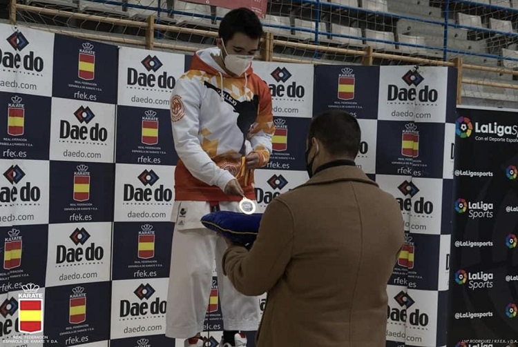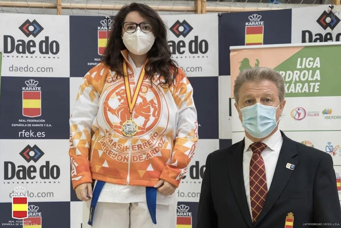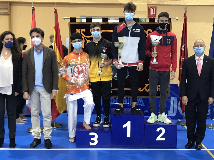 Torrejón de Ardoz, 17 de noviembre de 2020. Por otra parte, el Club Karate Tomás Herrero también fue protagonista en el Campeonato de Madrid en categoría Junior y Cadete que se disputó el pasado 31 de octubre en Collado Mediano. En este torneo, cinco de sus competidores se subieron al podio. Diego Palop se colgó la medalla de oro en Junior -76kg. En este mismo peso y categoría, Víctor Ríos fue bronce y Verónica Horcajuelo, plata en -48kg. Las otras dos medallas fueron en Cadete. Hiro Monzino en -63kg. y Aarón Herrero en -57kg. se colgaron el bronce completando el gran torneo de los torrejoneros.