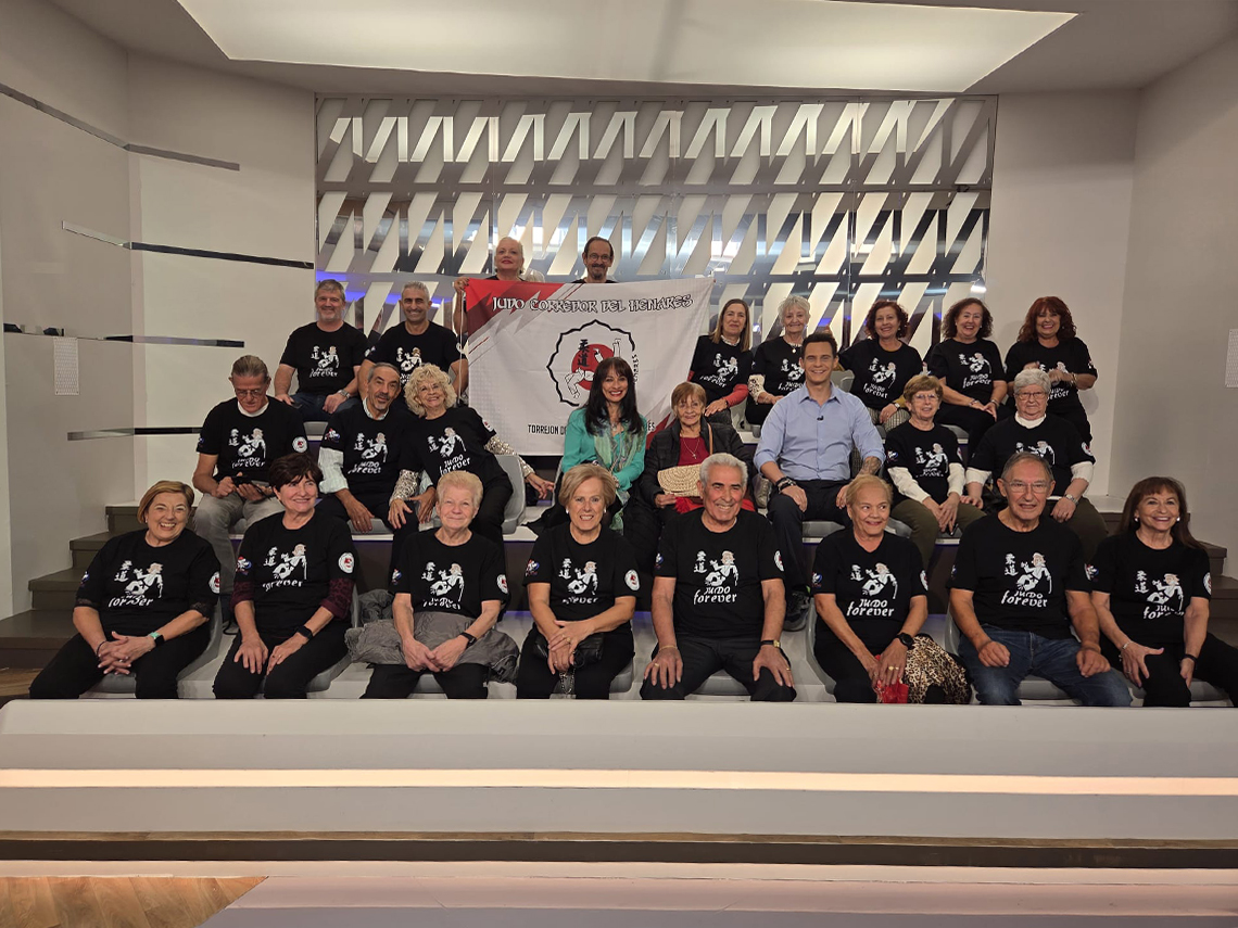 Los alumnos que participan en el proyecto de judo para mayores del Ayuntamiento de Torrejón de Ardoz estuvieron el pasado martes, 28 de octubre, en el programa de Telemadrid, La Tarde, presentado por Christian Gálvez, con motivo del Día Mundial del Judo. También asistieron Antonio Núñez, presidente del Club de Judo Corredor del Henares, y Enrique Eraña, ambos monitores de esta iniciativa. El programa de televisión completo se puede ver en el siguiente enlace: https://www.telemadrid.es/programas/la-tarde-de-telemadrid/La-Tarde-de-Telemadrid-28102025-2-2829337090--20251028061304.html