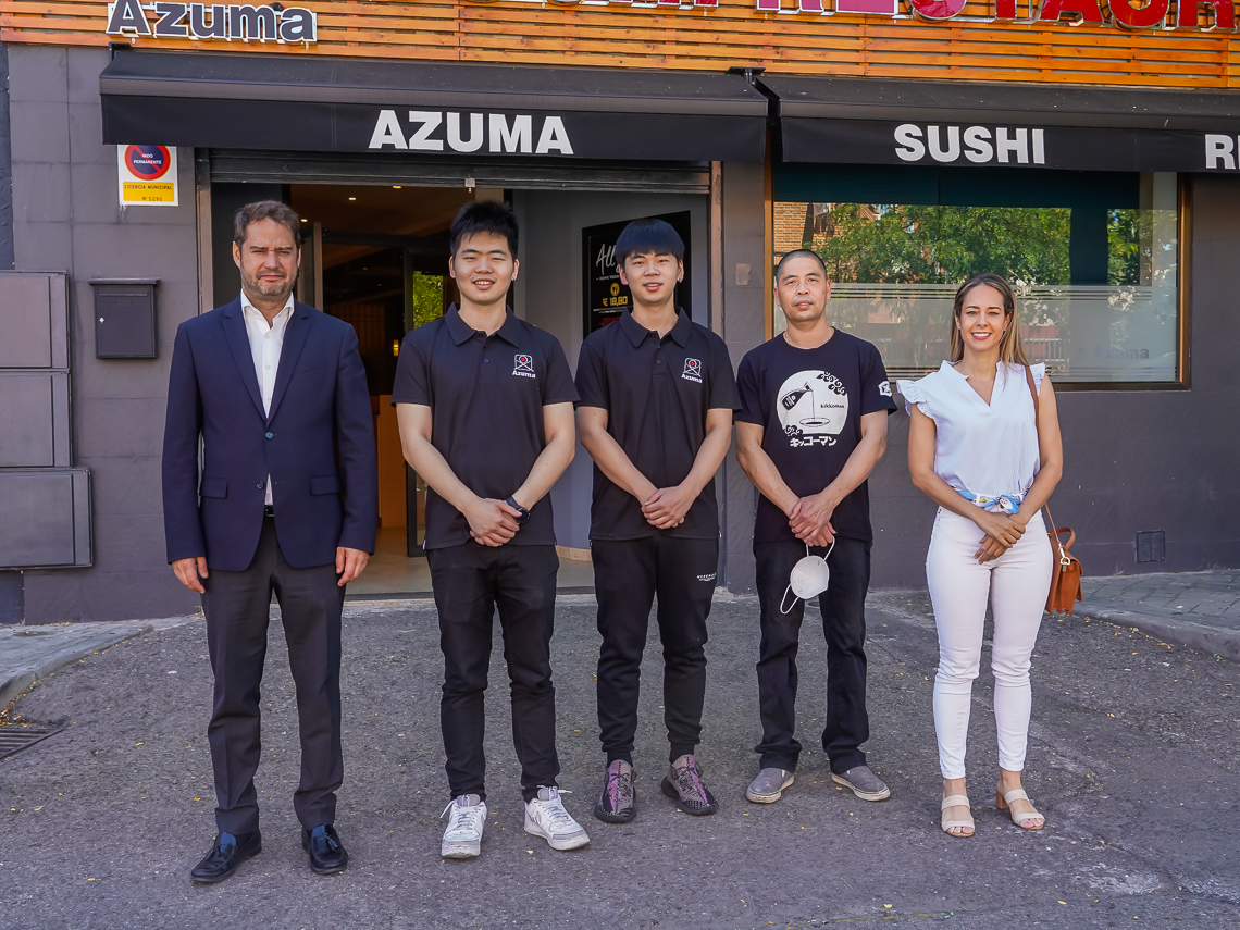 “AZUMA”, un nuevo restaurante japonés, ha abierto sus puertas en Torrejón de Ardoz, generando 5 puesto de trabajo. El alcalde, Ignacio Vázquez, y la concejala de Empleo y Contratación, Ainhoa García, visitaron ayer junto a su gerente, Weixiong Yang, su establecimiento como muestra del apoyo que el Gobierno local ofrece a los emprendedores locales.