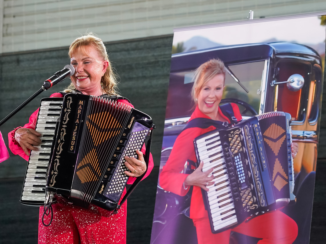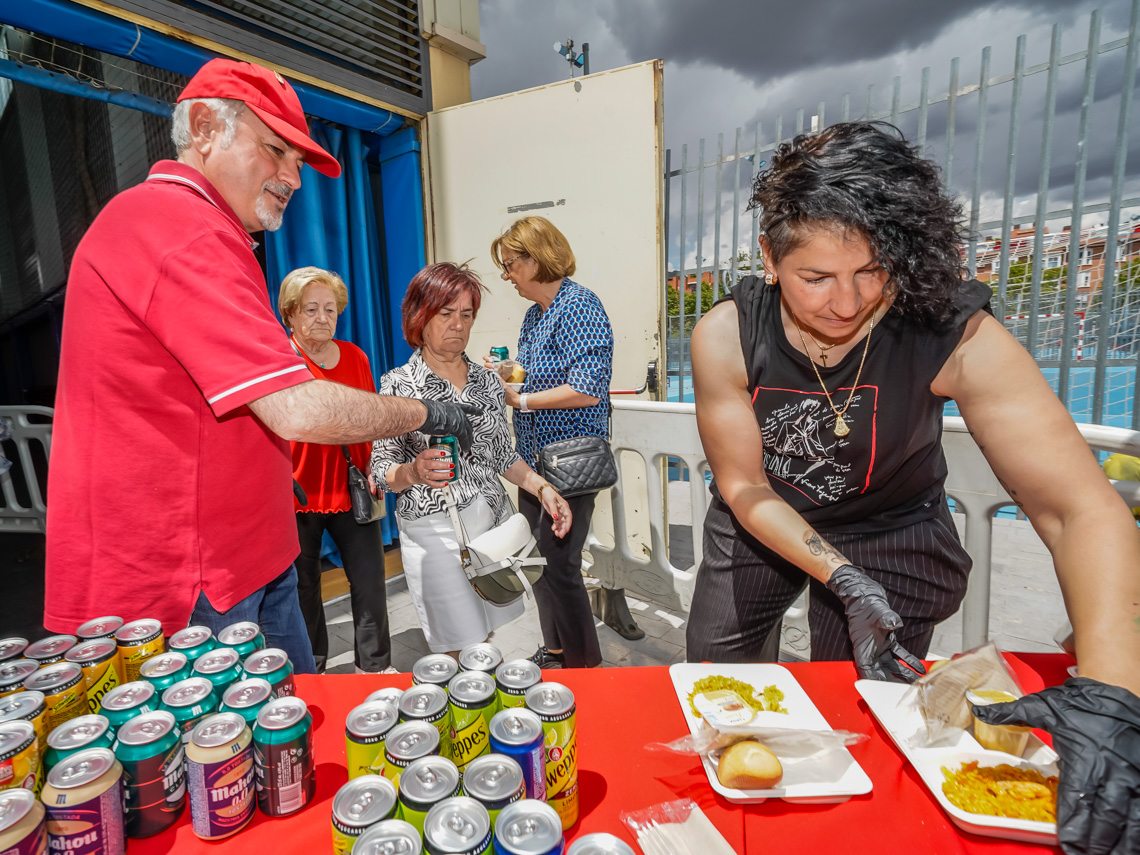 Torrejón de Ardoz, 23 de mayo de 2024. El tradicional reparto gratuito de paella y la actuación de María Jesús y su acordeón, que hizo las delicias de las personas mayores con sus temas más tradicionales y festivos, fueron las citas que más mayores congregaron y que tuvieron lugar el pasado domingo, día en el que también se celebró el concierto de Gema Castaño y que también tuvo muy buena acogida.