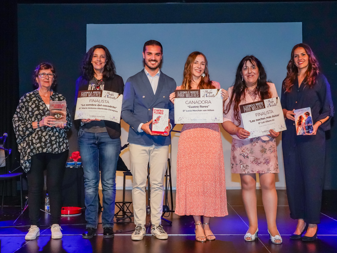 Lucía Merchán van Hilten es la ganadora del IX Certamen Literario de Narrativa “Mujer al viento”, con su obra “Cuatro Flores”. Además, han resultado finalistas, María Antonia Abelenda Zaragoza con “La Sombra del Cocodrilo” y María Dolores Albero Gil con “Las Noches más Dulces”. El alcalde, Alejandro Navarro Prieto, y la concejala de Igualdad y Festejos, María Eugenia Gil Blazquez, entregaron, en el Centro Culturas Las Fronteras, los premios a las tres escritoras galardonadas que han sido seleccionadas de entre 79 autoras participantes de toda España, siendo esta edición la que ha contado con más participación de las nueve ediciones celebradas.