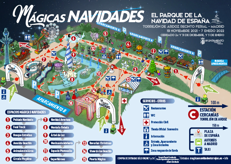 • Tendrá aforo limitado y se accederá mediante la obtención de la entrada solo por vía telemática a un precio simbólico de 1 y 2 euros (excepto puente de la Constitución consultar precio). La venta de entradas comenzará este fin de semana y se hará a través de la web https://entradasmagicasnavidades.com/ Los torrejoneros empadronados también tendrán que adquirir la invitación gratuita online de forma anticipada a través de la misma web para visitar el parque