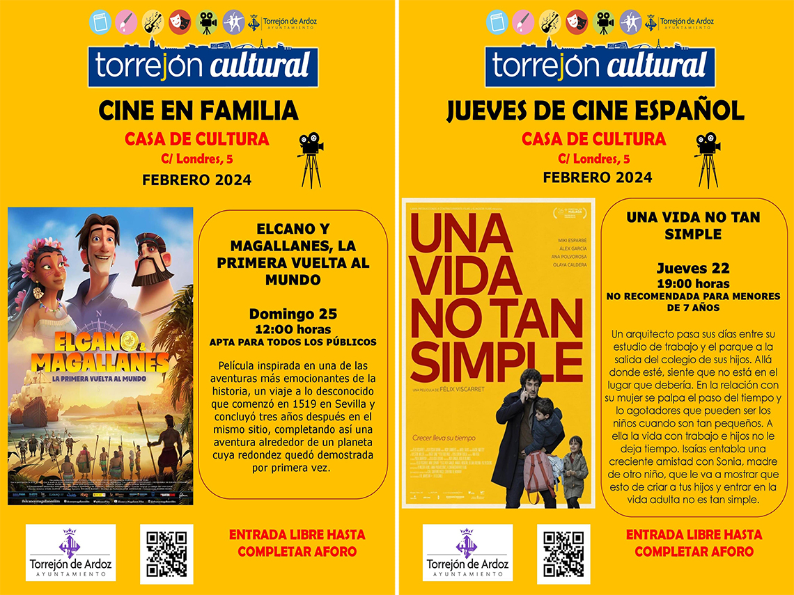 “Los ciclos “Jueves de Cine Español” y “Cine en Familia” son dos iniciativas gratuitas más de las muchas que ponemos a disposición de los torrejoneros desde la Concejalía de Cultura, en este caso, para fomentar el séptimo arte, no solo entre los adultos, sino también entre los más pequeños de la casa e inculcarles esta afición”, señaló el alcalde, Alejandro Navarro Prieto.