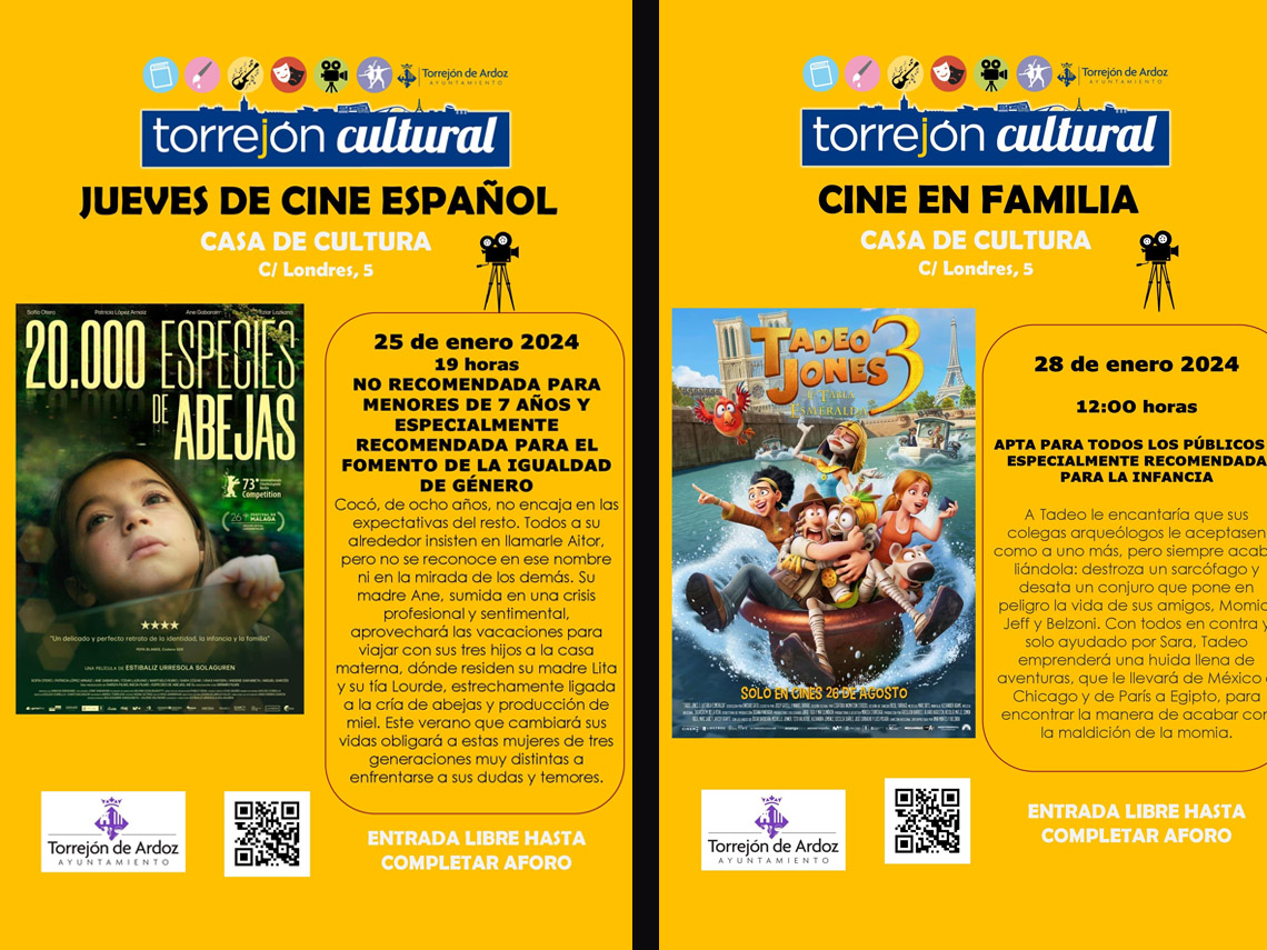 “Los ciclos “Jueves de Cine Español” y “Cine en Familia” son dos iniciativas gratuitas más de las muchas que ponemos a disposición de los torrejoneros desde la Concejalía de Cultura, en este caso, para fomentar el séptimo arte, no solo entre los adultos, sino también entre los más pequeños de la casa e inculcarles esta afición”, señaló el alcalde, Alejandro Navarro Prieto.