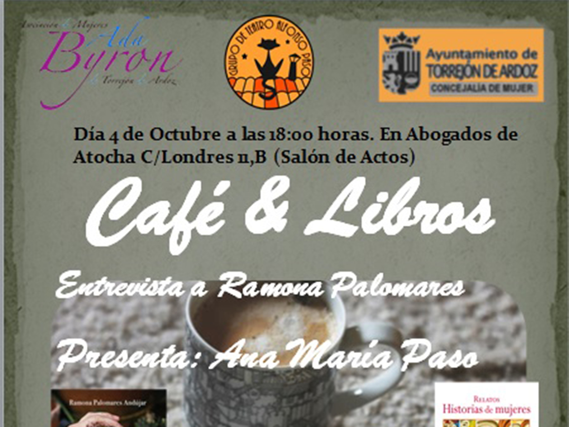 • Se trata de un programa de entrevistas a escritores locales. Así, cada cierto tiempo, la Asociación de Mujeres de Torrejón Ada Byron entrevistará a algún autor que presentará sus libros y charlará con las socias en una tarde con el nombre “Café y Libros”