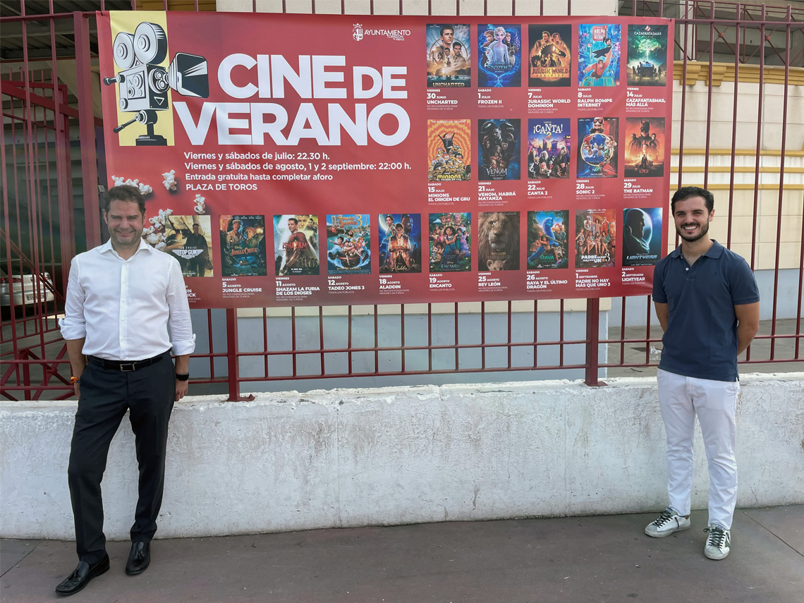 • De esta forma, vuelve el Cine de Verano en el que se proyectarán 20 películas de gran éxito los viernes y sábados hasta el 2 de septiembre en la Plaza de Toros con entrada gratuita. Los viernes las películas se dirigen a un público más adulto y los sábados los filmes estarán dedicados a un público más infantil y familiar. Así, se podrán ver las películas con más espectadores de los últimos años, como Jurassic World Dominion, Venom, habrá matanza, Minions el origen de Gru, Tadeo Jones 3, Shazam la furia de los Dioses, Cazafantasmas, más allá, Canta 2, Sonic 2, The Batman, Top Gun Maveric o Padre no hay más que uno 3, entre otras