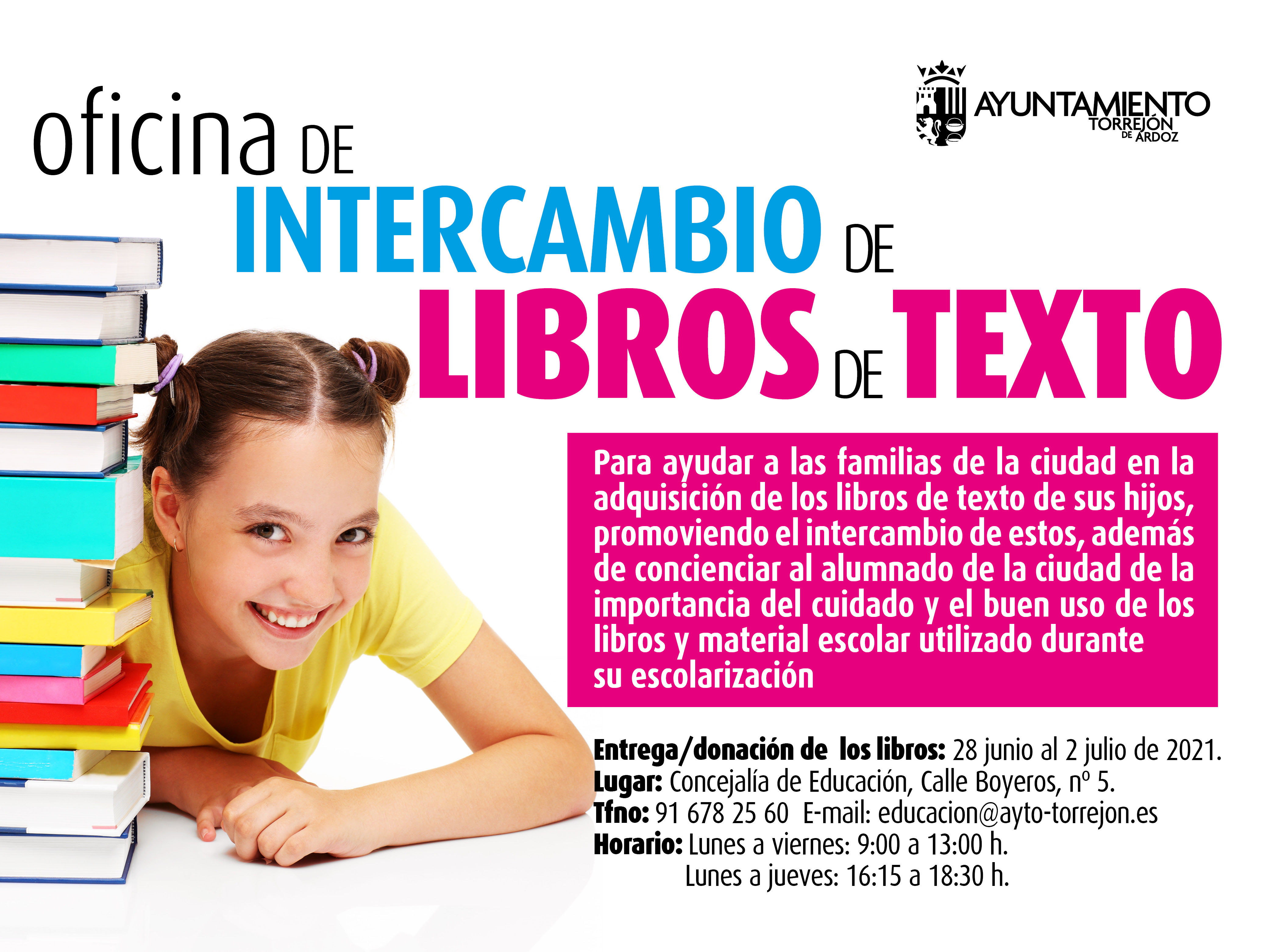 Hasta mañana viernes 2 de julio tendrá lugar el periodo para donar libros de la Oficina de Intercambio de Libros de Texto. Se trata del “Programa de Intercambio de Libros de Texto” puesto en marcha por el Ayuntamiento de Torrejón de Ardoz por octava edición consecutiva tras el éxito de años pasados. El objetivo es ayudar a las familias de la ciudad en la adquisición de los libros de texto de sus hijos, promoviendo el intercambio de estos, además de concienciar al alumnado de la ciudad de la importancia del cuidado y el buen uso de los libros y material escolar utilizado durante su escolarización.