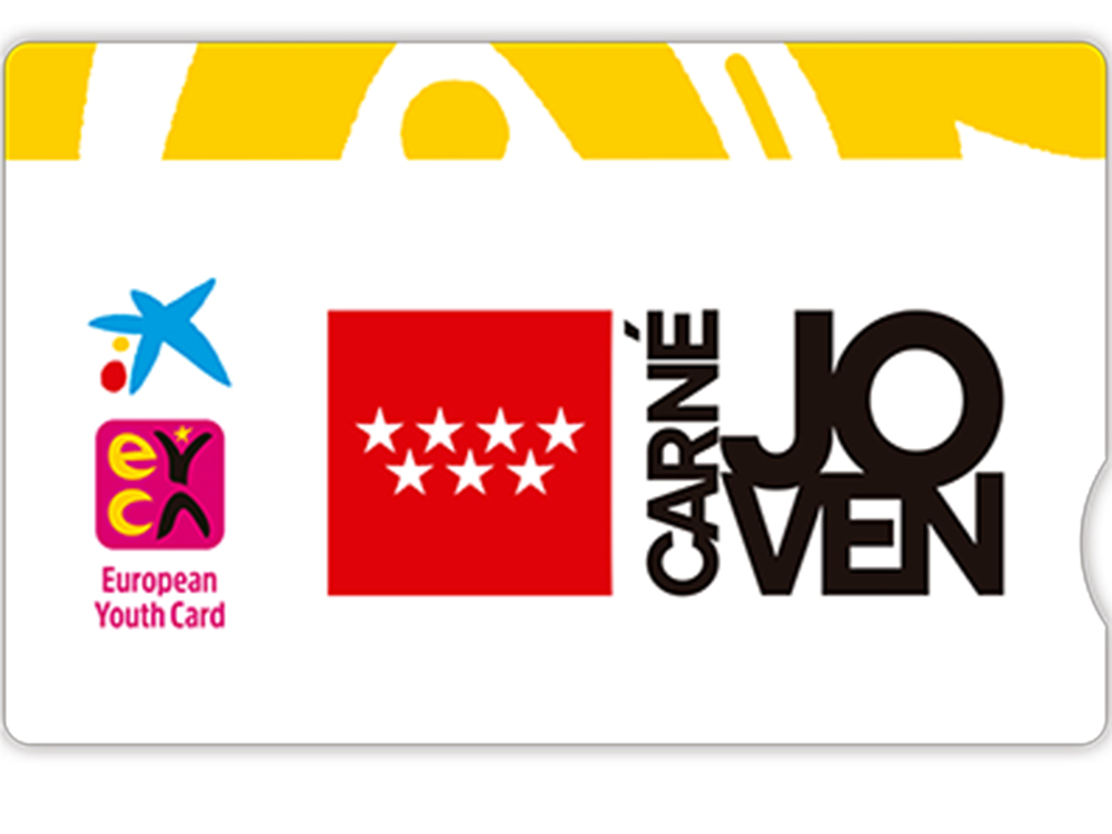• Está destinado a los jóvenes entre 14 y 30 años y ofrece múltiples descuentos y servicios, tanto en la Comunidad de Madrid, como en las demás comunidades autónomas y en más de 37 países europeos. Entre ellos, tendrá descuentos y promociones en transporte, albergues juveniles, actividades culturales, formación, centros de ocio, viajes, cine, obras de teatro, bares y restaurantes o actividades deportivas, entre otras muchas