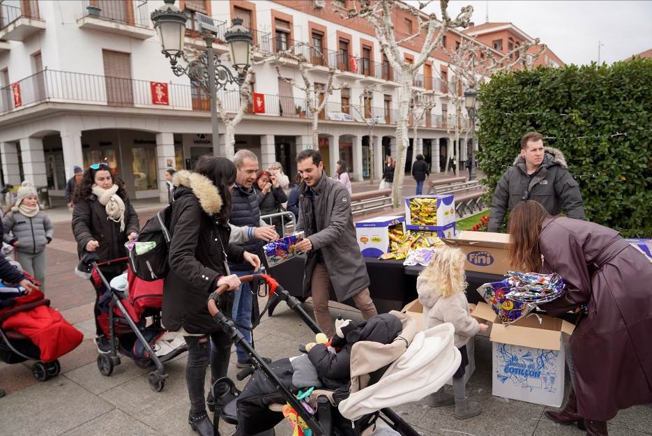 Torrejón de Ardoz, 03 enero de 2024. Hubo animación con las canciones de los Guachis como principales protagonistas y se repartieron 12 chucherías para los niños más mayores y una bolsa de gusanitos para los más pequeños.