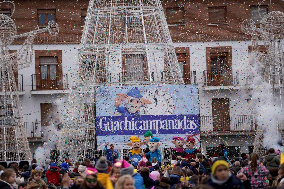 Multitudinaria fiesta en la Plaza Mayor de Torrejón de Ardoz para dar la bienvenida al nuevo año con las Guachicampanadas