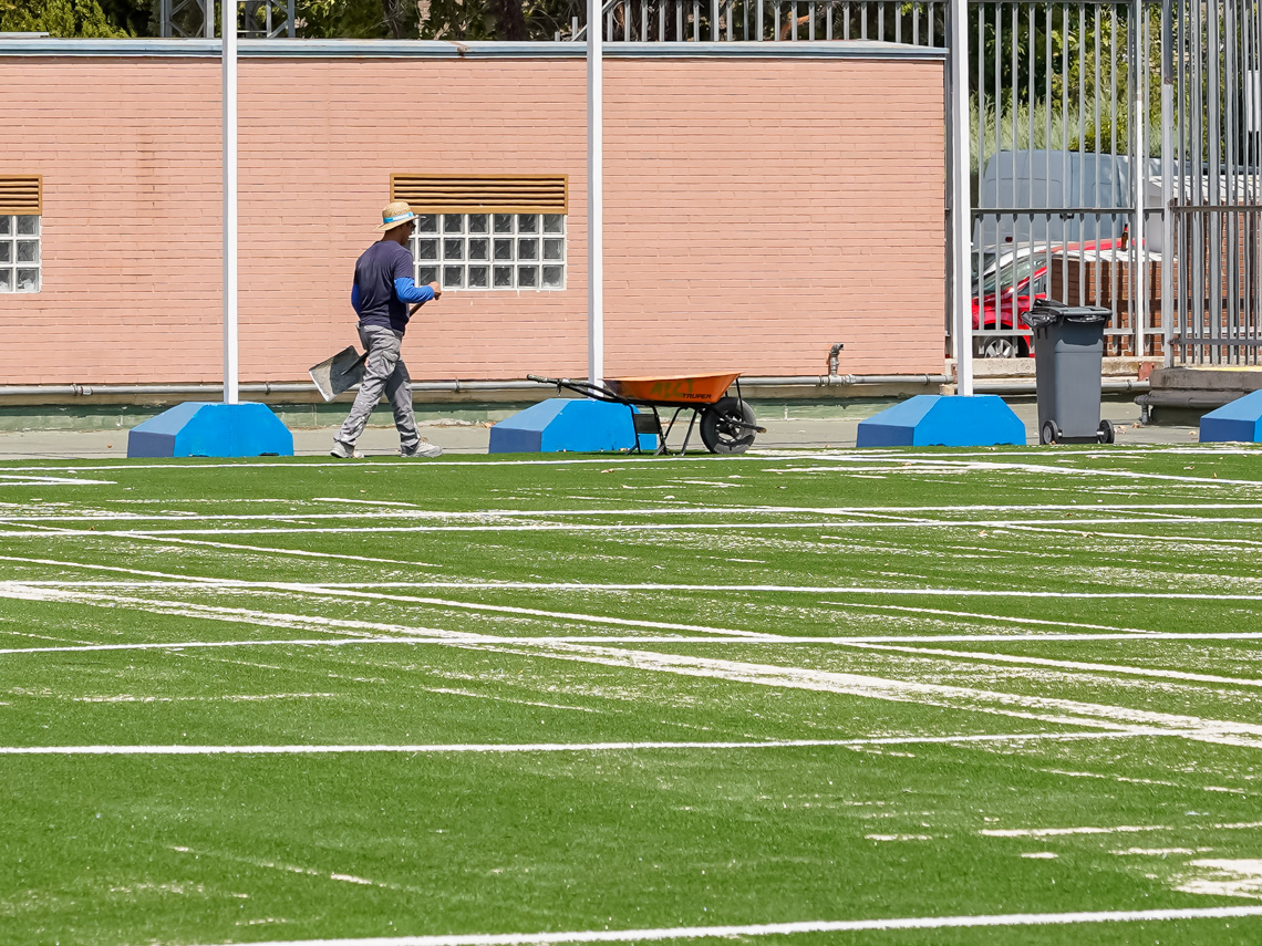 • “Estamos aprovechando el verano para realizar obras de mejora y mantenimiento en distintos espacios públicos como es el caso de los campos de fútbol 7 de la calle Florencia que utilizan nuestros deportistas más jóvenes y, de esta manera no entorpecemos la competición ya que para el inicio de la liga estarán en perfecto estado”, recordó el alcalde