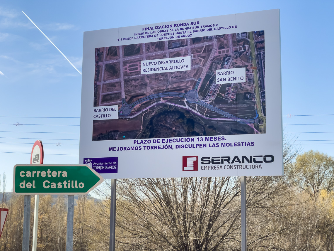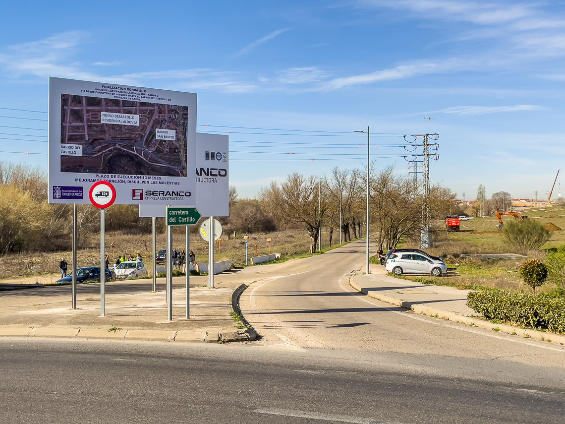 Torrejón de Ardoz, 16 de marzo de 2023. La 2ª fase, a la que se añadirá una 3ª y definitiva fase, completará la Ronda Sur unirá la Carretera de Loeches (Rotonda Torre Eiffel-Parque Europa) con el Polígono Los Almendros, desdoblando y modificando el actual trazado de la carretera del barrio del Castillo. Esta infraestructura viaria va a beneficiar a toda la zona sur de la ciudad, en especial a los barrios de Fresnos, Rosario, Cañada, Parque Cataluña, Torrenieve, Castillo, San Benito, Mancha Amarilla y Soto Henares, entre otros.