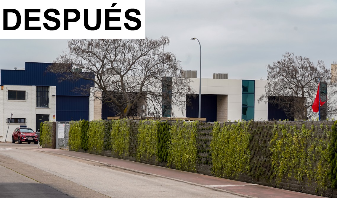 Esta actuación contribuye a la reducción de las emisiones de gases de efecto invernadero, a disminuir los intervalos de temperatura extremos, incrementando la temperatura ambiente en invierno y bajándola en verano. Además, la ubicación del muro vegetal supone una importante mejora visual en una de las entradas al polígono.