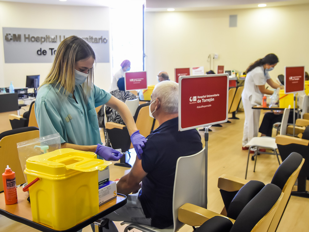 • Además, el centro sanitario torrejonero administra la primera y segunda dosis, y a los mayores de 55 años, la tercera. Por tanto, la población de edad igual o mayor de 55 años ya ha comenzado a recibir la tercera dosis y se seguirá vacunando a los mayores de 60, con el fin de extender aún más la inmunización