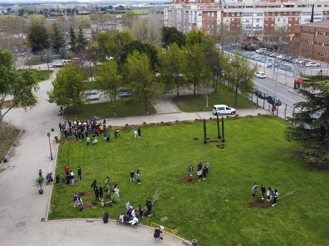 Torrejón de Ardoz, 5 abril de 2022. Torrejón ha celebrado el Día del Árbol con la plantación de 200 árboles por parte de 600 escolares de la ciudad. Esta actividad no se pudo desarrollar el pasado 21 de marzo (Día del Árbol) a causa de la lluvia. Así, con la plantación de 200 árboles en el Parque Juncal, el Ayuntamiento finaliza la campaña de reforestación de esta primavera 2022, en las calles y parques de la ciudad. Esta plantación se ha llevado a cabo con la participación de 600 escolares de 11 colegios de Torrejón, en una jornada lúdica donde han aprendido el valor que tienen los árboles.