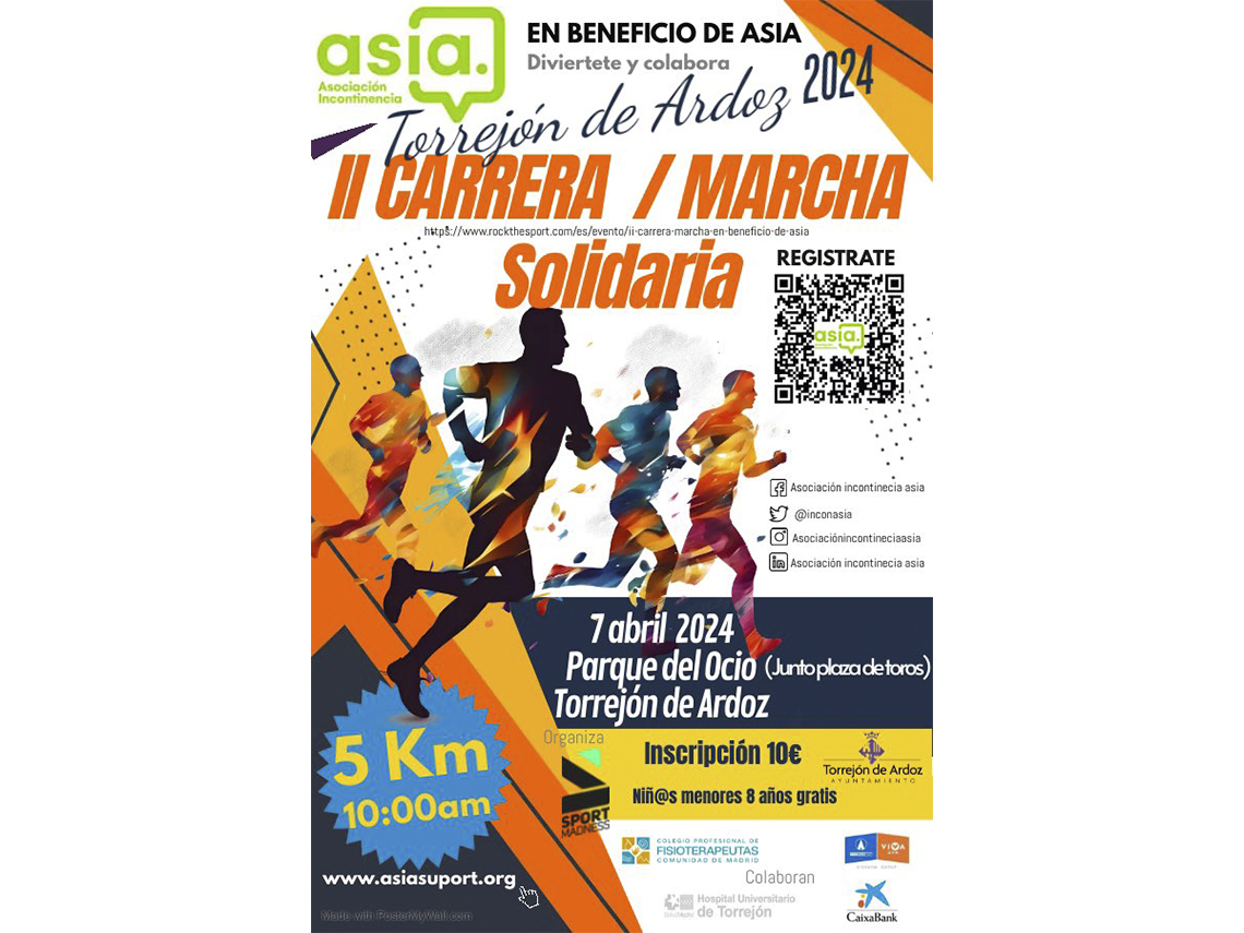 Torrejón de Ardoz acogerá este domingo, 7 de abril, la II carrera solidaria a favor de la Asociación de Incontinencia ASIA con el objetivo de dar visibilidad a esta patología fecal y urinaria