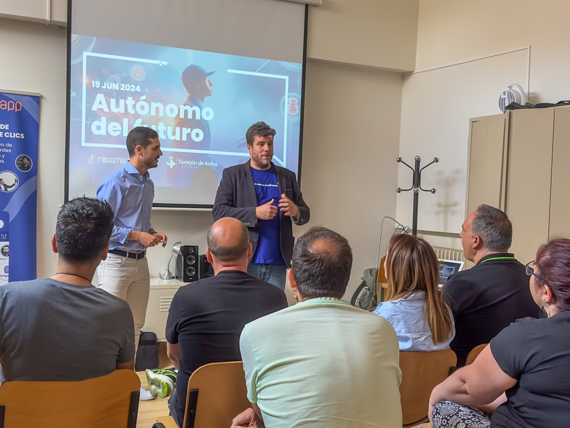 Torrejón de Ardoz acogió la celebración del evento "Autónomo del Futuro", que busca preparar a los autónomos para enfrentarse a los nuevos desafíos del mercado como digitalización, sostenibilidad y nuevas oportunidades. De esta forma, la jornada estaba diseñada para ofrecerles herramientas, conocimientos y estrategias, ayudándoles a adaptarse a un mercado en constante evolución. La cita, organizada por Recomiend.app, en colaboración con el Ayuntamiento, tuvo lugar en la Casa de la Cultura, con entrada gratuita y contó con la presencia del alcalde, Alejandro Navarro Prieto, que se acercó a saludar a todos los asistentes.