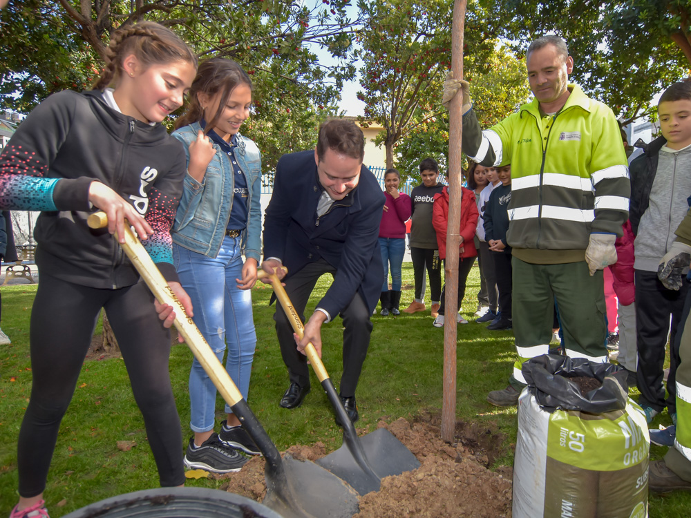 • El alcalde, Ignacio Vázquez y alumnos de Primaria del colegio Buen Gobernador han plantado esta mañana un nuevo madroño en el Parque Constitución que recuerda a la Carta Magna y que ya cuenta con 41 árboles, uno por cada año desde que se aprobó la “Ley de leyes”