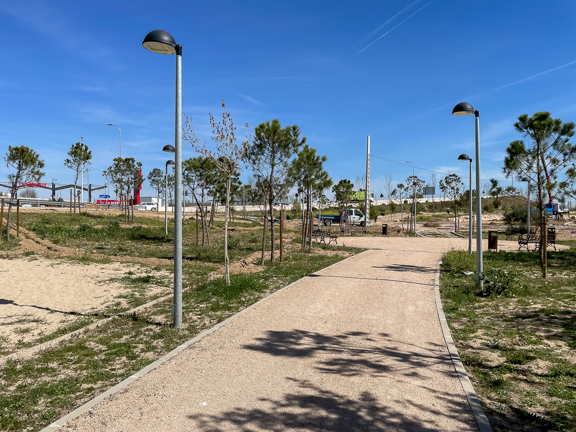-Parque Indra. Nueva zona verde que se está realizando en la carretera de Loeches mediante un convenio de cesión con la empresa INDRA. Tiene 1.000 m2 y va a contar con 600 m2 de praderas de césped natural. Se plantarán 7 árboles de gran calibre para proporcionar sombra en la época estival y se colocará nuevo acerado, 100 metros lineales de muro de cerramiento, 5 unidades de luminaria con columnas de 6 metros de altura, 200 metros lineales de sistema de distribución de agua, 3.500 metros lineales de tubería de riego y 32 aspersores. Además, se dotará de 7 bancos y 7 papeleras modelo Torrejón.