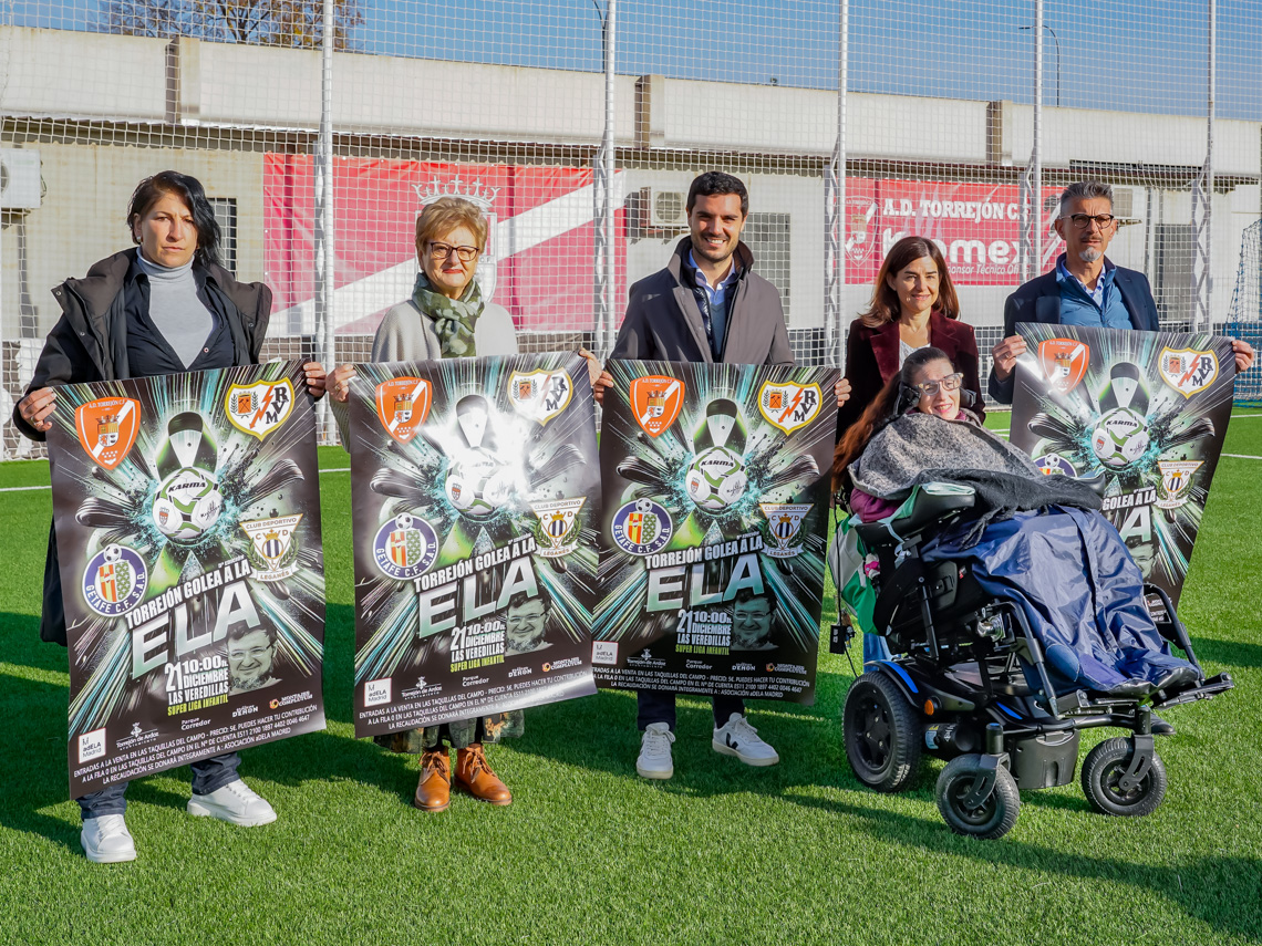Mañana, sábado, 21 de diciembre, en el Campo de Fútbol Municipal Las Veredillas, tendrá lugar la quinta edición del torneo benéfico, “Torrejón golea a la ELA”, organizado por la AD Torrejón CF y con la colaboración y el apoyo del Ayuntamiento. El objetivo es recaudar fondos destinados a la asociación adELA MADRID para financiar los tratamientos de los enfermos de esclerosis lateral amiotrófica. Las entradas tendrán un precio de 5 euros y se podrán comprar en la taquilla del campo el mismo día del evento. Además, el evento sirve también para rendir homenaje al exjugador y veterano del club, Dabiz Riaño, que lucha desde hace varios años contra esta enfermedad.