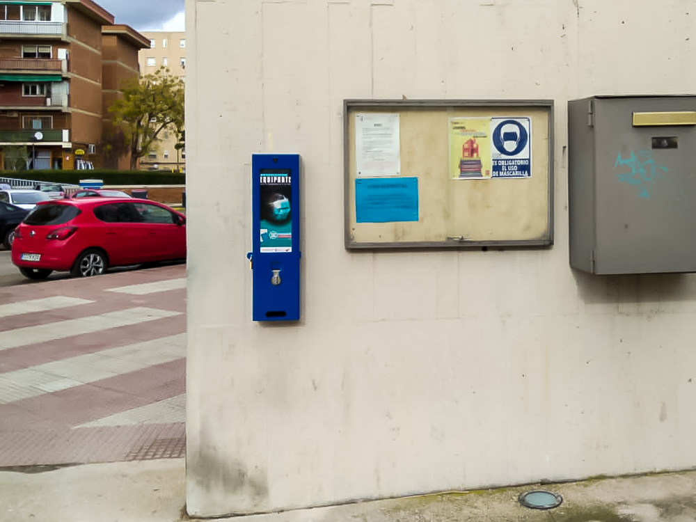 Torrejón de Ardoz, 24 de marzo de 2021. Han sido instaladas en lugares estratégicos de la ciudad de especial afluencia y tránsito, como son el Parque del Ocio, el Parque Europa, centros culturales y deportivos, así como en exteriores de dependencias municipales. Con estos elementos de apoyo se pretende hacer más fácil la adopción de medidas preventivas en cualquier momento que se precise, facilitando su acceso a este material.