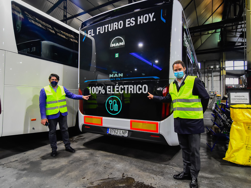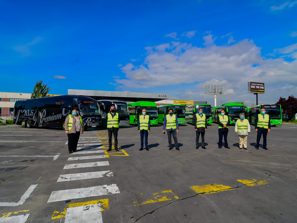 Torrejón de Ardoz 10 de mayo de 2021. El alcalde de Torrejón de Ardoz, Ignacio Vázquez, y el consejero de Vivienda y Administración Local de la Comunidad de Madrid, David Pérez, visitaron hace unos días la sede de ALSA en la ciudad como muestra de apoyo al trabajo y a la innovación de esta empresa en el transporte de viajeros y a su apuesta por la sostenibilidad medioambiental y la reducción de emisiones. En la visita estuvieron varios directivos de la empresa ALSA y la concejala de Movilidad, Isabel Redondo.