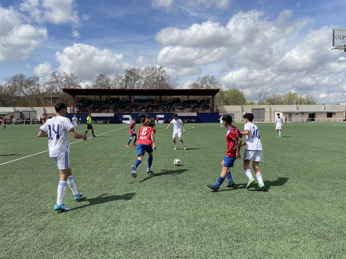 Torrejón de Ardoz, 13 de abril de 2022. En el Campo de Fútbol Municipal Las Veredillas se está disputando hasta hoy miércoles el Trofeo Oasiz, de categoría infantil, con la participación de la AD Torrejón CF, Real Madrid, Atlético de Madrid, Real Sociedad, Athletic Club de Bilbao y Periso CF.