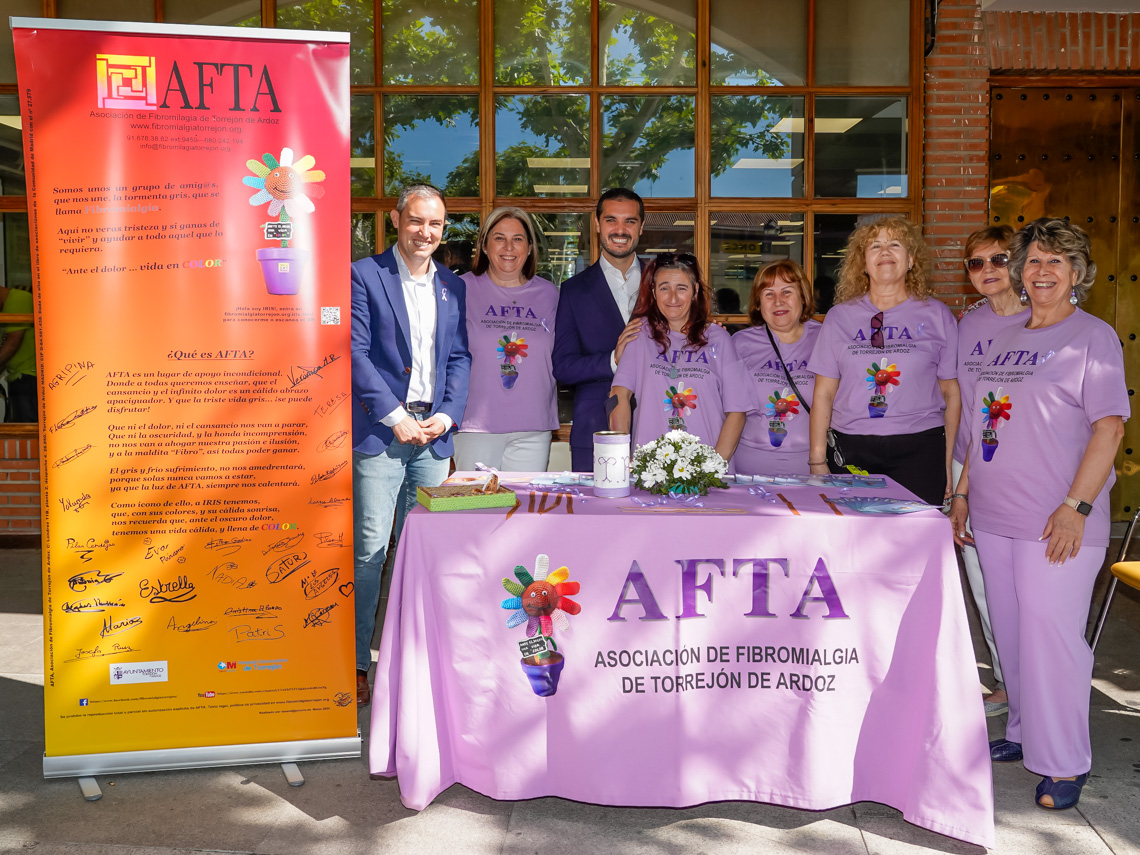 Torrejón se suma a la celebración del Día Mundial de la Fibromialgia que tendrá lugar el próximo domingo, 12 de mayo. Así, la Asociación de Fibromialgia de Torrejón de Ardoz (AFTA) ha colocado mesas informativas en el Hospital Universitario de Torrejón, en Plaza España, en el Centro de Especialidades Las Veredillas y en la Plaza Mayor, a donde se han acercado esta mañana el alcalde, Alejandro Navarro Prieto, y el concejal de Bienestar, Educación e Inmigración, Rubén Martínez. En estos stands se da a conocer esta dolencia, así como el trabajo que se realiza desde la asociación y los objetivos que persigue la organización.