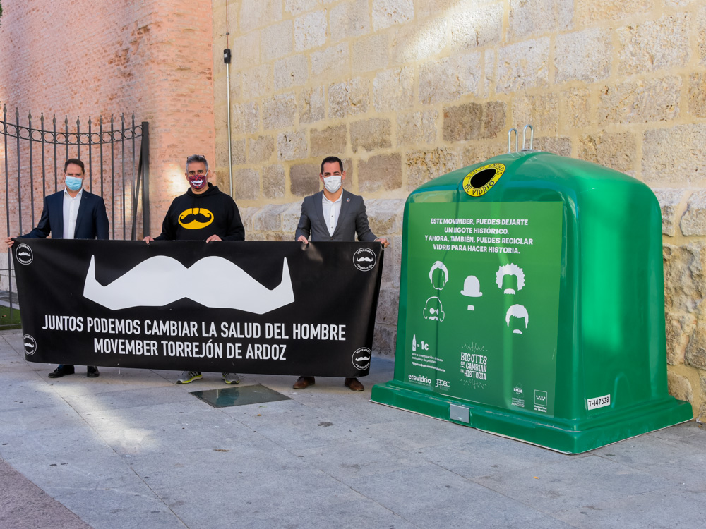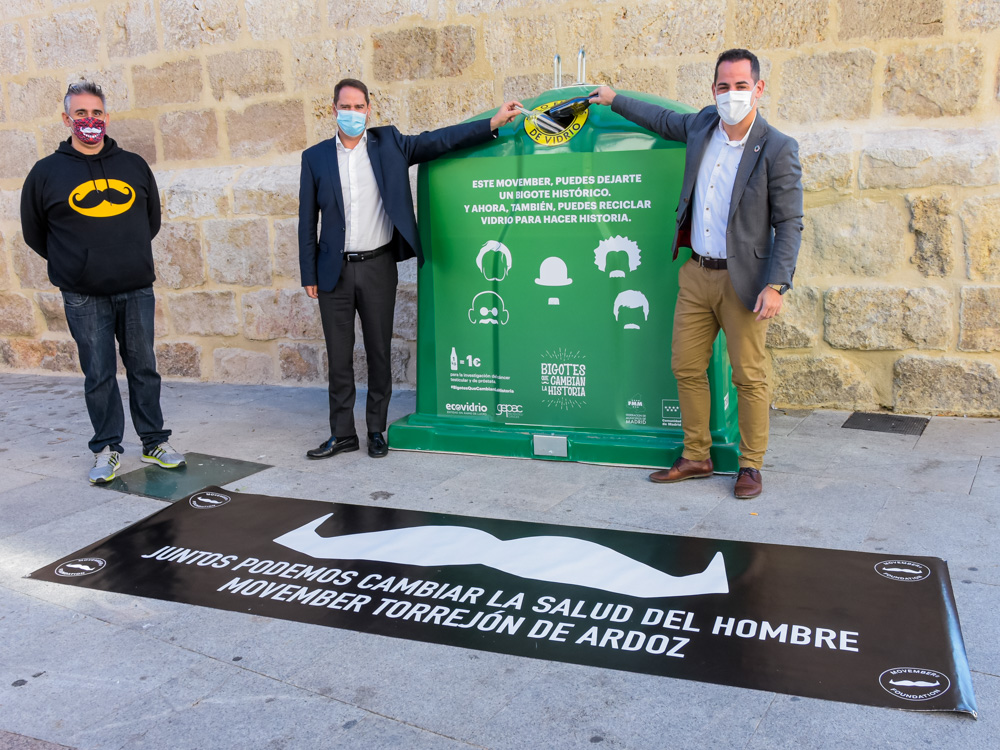 Torrejón de Ardoz se suma a través de la campaña organizada por Ecovidrio, la entidad sin ánimo de lucro encargada de la gestión del reciclado de los residuos de envases de vidrio en España, a Movember, el movimiento que lucha contra el cáncer testicular y de próstata. El alcalde, Ignacio Vázquez, el responsable de Ecovidrio, Ricardo Sevilla, y el coordinador del movimiento Movember en la ciudad, Luis Sáez, han presentado esta mañana la iniciativa que tiene como objetivo movilizar a los ciudadanos a reciclar envases de vidrio y contribuir así con una causa solidaria y luchar contra el cáncer testicular y de próstata.