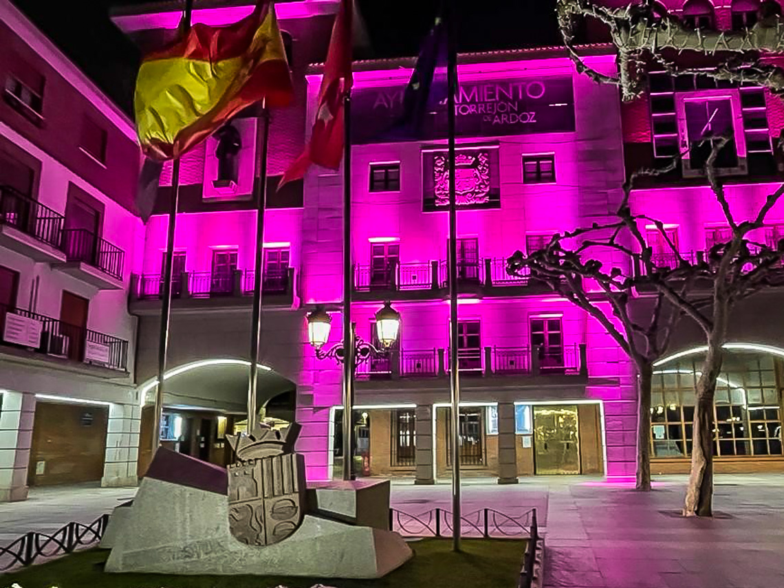 • Además, los pasados 18 y 19 de octubre Torrejón de Ardoz también conmemoró el Día Mundial contra el cáncer de mama, iluminando de rosa la fachada del Ayuntamiento, como muestra de apoyo a la Asociación Española Contra el Cáncer y concienciar sobre la lucha contra esta enfermedad en la que la importancia de la investigación y el diagnóstico precoz son herramientas esenciales para poder erradicarla, ya que se puede curar si se detecta a tiempo