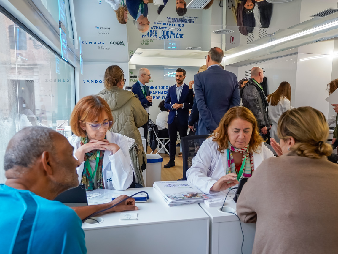 Torrejón de Ardoz, 16 de octubre de 2024. Con motivo de su 125 aniversario, el Colegio Oficial de Farmacéuticos de Madrid (COFM) ha puesto en marcha esta campaña en colaboración con Sandoz Iberia, que recorre distintos municipios madrileños para mostrar la labor asistencial de los farmacéuticos comunitarios y ofrece el acceso a pruebas gratuitas para la prevención de enfermedades como la diabetes y la hipertensión, así como otras evaluaciones relacionadas con la salud respiratoria y la osteoporosis, la adherencia terapéutica y la prevención de hábitos perjudiciales como el tabaquismo.