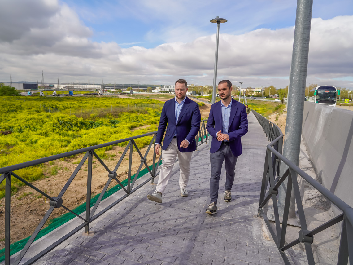 • El alcalde destacó que “con esta nueva vía, financiada por la Junta de Compensación y realizada bajo la supervisión del Ayuntamiento, atendemos una reclamación de muchos vecinos que nos solicitaban una comunicación peatonal entre el casco urbano de Torrejón y el Polígono de los Almendros y, con ella, muchas personas que trabajan en este desarrollo industrial podrán ir a píe si lo desean o simplemente pasear por ella”