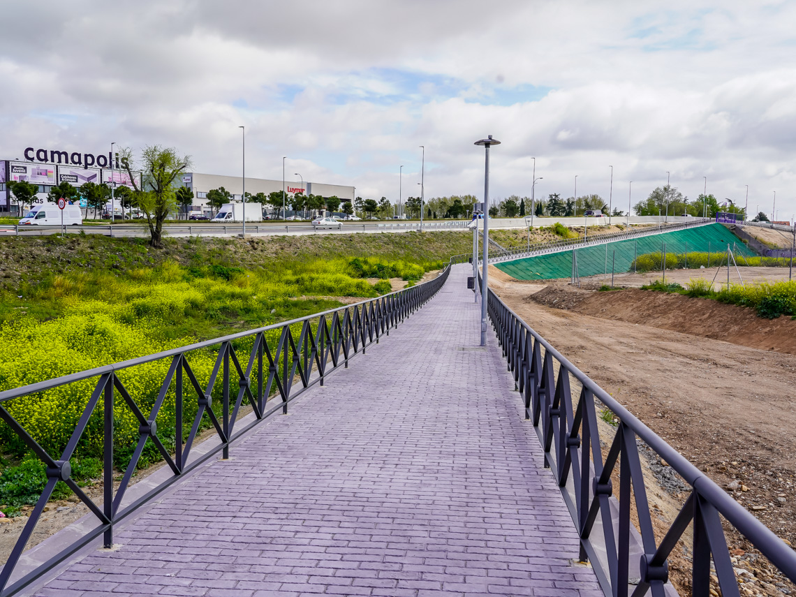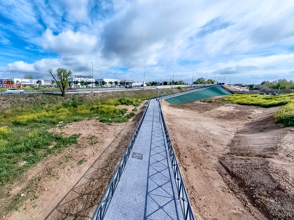 Un amplio camino peatonal, totalmente acondicionado, comunica el Polígono Los Almendros y el casco urbano de Torrejón de Ardoz desde el barrio de Fresnos