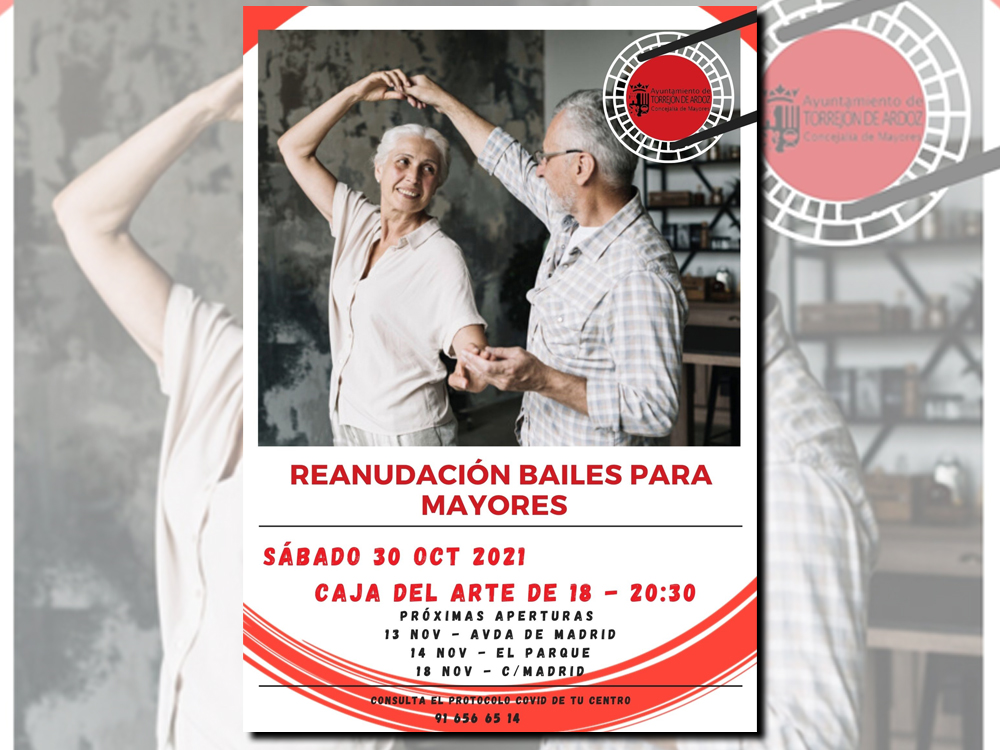 • Por otro lado, la nueva temporada de los Bailes de Mayores dará su pistoletazo de salida este sábado 30 de octubre en La Caja del Arte de 18:00 a 20:30 horas. A esta primera cita le seguirán la del 13 de noviembre en el Centro de Mayores de la avenida de Madrid, el domingo 14 de noviembre en el Centro de Mayores El Parque y el 18 de noviembre en el Centro de Mayores de la calle Madrid